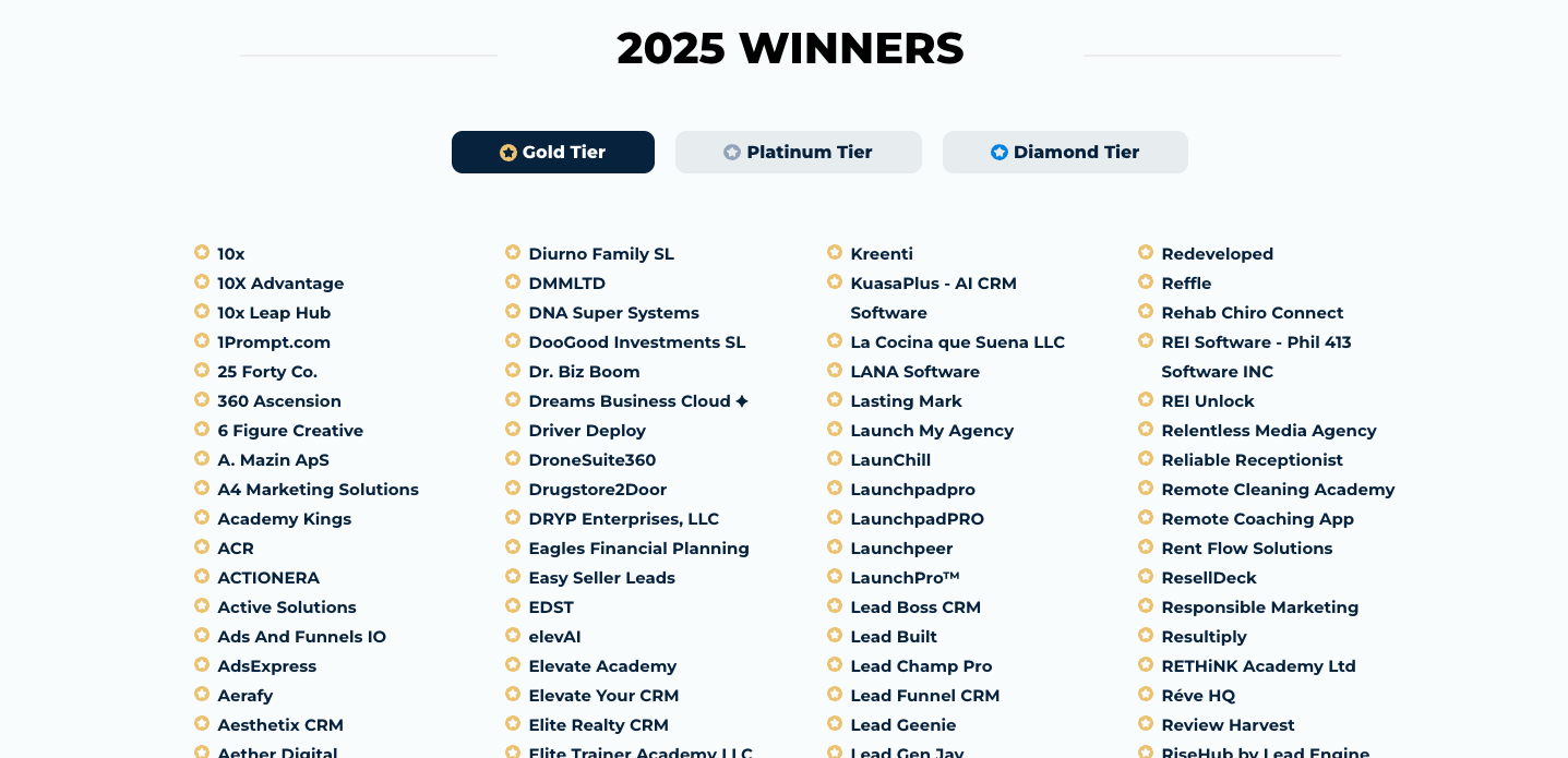 Every year, GHL publishes their SaaSPreneur Award Winners showing their top performing SaaS businesses.